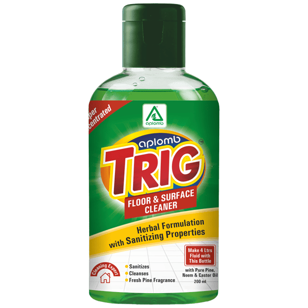 Aplomb Trig Floor and Surface Cleaner is a concentrated formulation of Pure Pine, Neem and Castor Oil without any mineral oil or other additives. With a combination of surfactants, it cleanses and sanitizes floors, tiles, kitchen platforms, kitchen & bathroom drains etc most effectively.