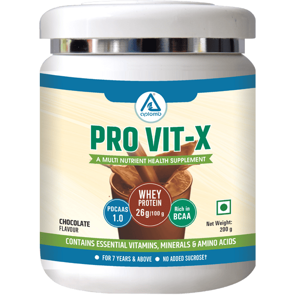 APLOMB PRO VIT-X is formulated with 26% WHEY PROTEIN which is a mixture of proteins isolated from whey. Whey is the liquid part of milk that separates during cheese production. Whey Protein has high absorption in the body due to its branched-chain structure & high bioavailability.